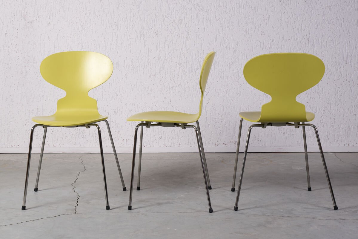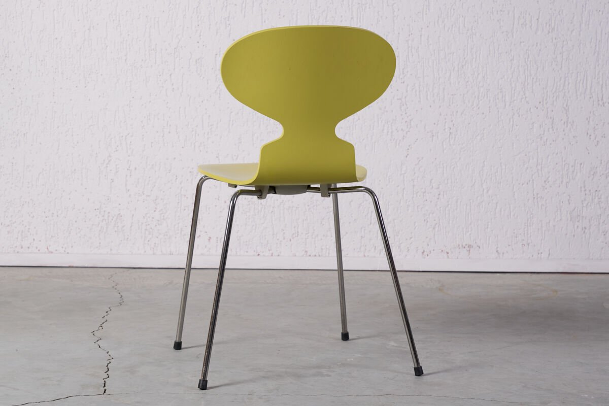 Ant Chair, Arne Jacobsen tarafından 1952'de tasarlanmış, ince profilli, formu bir karıncayı andıran tek parça eğimli kabuğa sahip hafif ve işlevsel bir sandalyedir; öncelikle restoran ve ofis kullanımı için düşünülmüş, zarif silueti, ergonomik oturma yüzeyi ve istiflenebilir yapı ile çağdaş modern tasarımın simgelerinden biridir.