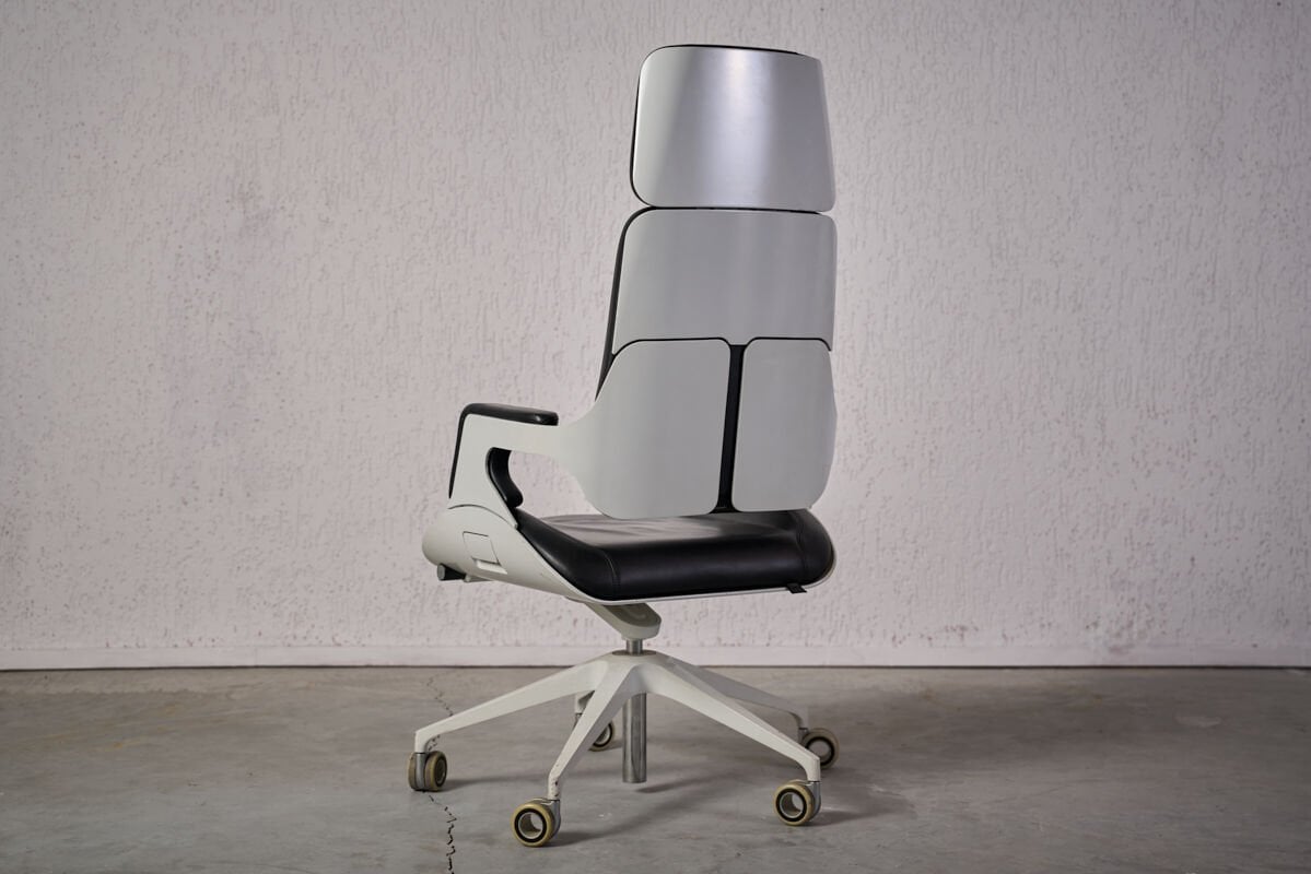 Interstuhl Swivel 362S Chair, ünlü tasarımcı Hadi Teherani tarafından tasarlanmış, ergonomik ve modern bir ofis sandalyesidir. Fonksiyonelliği ve estetik tasarımı ile dikkat çeken bu sandalye, hem çalışma alanlarında hem de ev ofislerinde konforlu bir oturum deneyimi sunar. Hadi Teherani'nin tasarım anlayışı, işlevselliği ve estetik unsurları bir araya getirerek kullanıcılara hem rahatlık hem de şıklık sağlar.