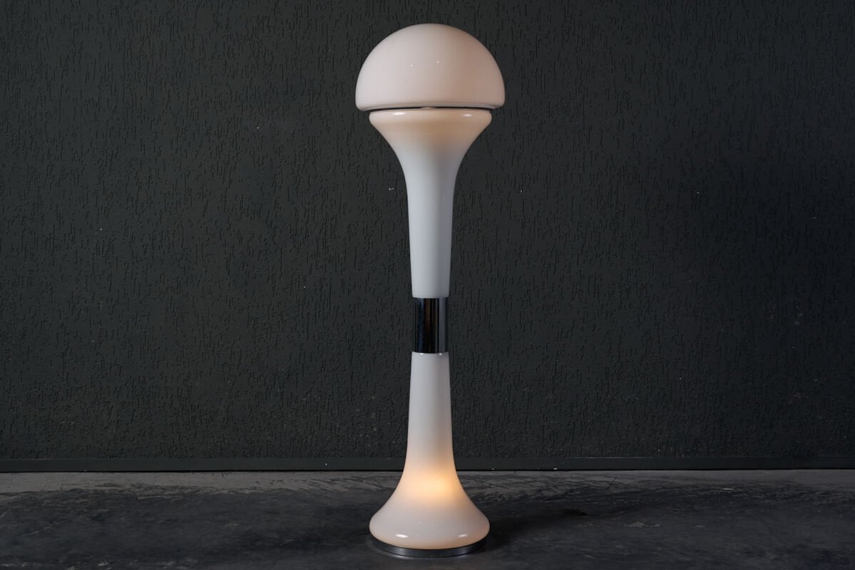Italian Mazzega Glass Floor Lamp, 1970'li yılların ikonik bir parçası olarak öne çıkar. Bu lamba, Mazzega camının benzersiz işçiliği ile üretilmiş olup, el yapımı detaylarıyla dikkat çeker. Genellikle renkli ve şeffaf cam kullanılarak tasarlanmış olan lamba, hem aydınlatma işlevi görür hem de iç mekanlarda göz alıcı bir dekoratif öge olarak yer alır. Estetik ve şıklığı bir araya getiren bu tasarım, retro ve modern iç mekanlara mükemmel bir uyum sağlar. Lamba, yumuşak ve homojen bir ışık yayma yeteneği ile farklı alanlarda kullanılabilir. Her bir parça, el yapımı olduğu için benzersizdir ve bu da onu koleksiyoncular ve sanat tutkunları için cazip kılar.