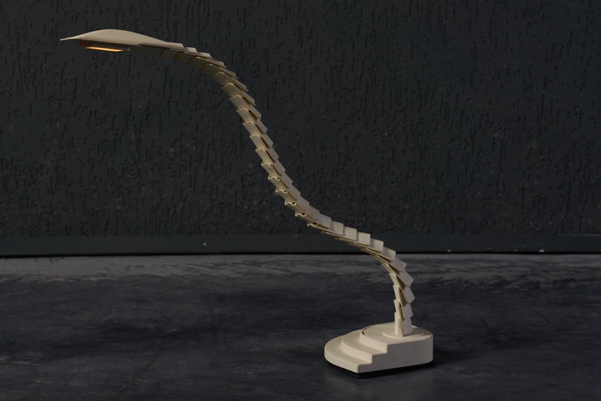 Proteo masa lambası, omurga formunu andıran eşsiz tasarımıyla dikkat çeker. 1970'lerin estetik anlayışını yansıtan bu halojen lamba, hem fonksiyonel hem de dekoratif bir parça olarak öne çıkar. Özellikle iç mekanlarda modern bir dokunuş sağlarken, el yapımı detayları ve kaliteli malzemeleri ile benzersiz bir atmosfer yaratır. Farklı açılarda ışık yayabilme özelliği sayesinde kullanıcıya esneklik sunar. 'Proteo', vintage ve retro tasarım tutkunları için koleksiyonluk bir parçadır.
