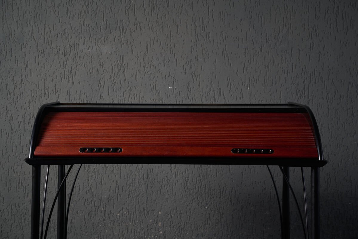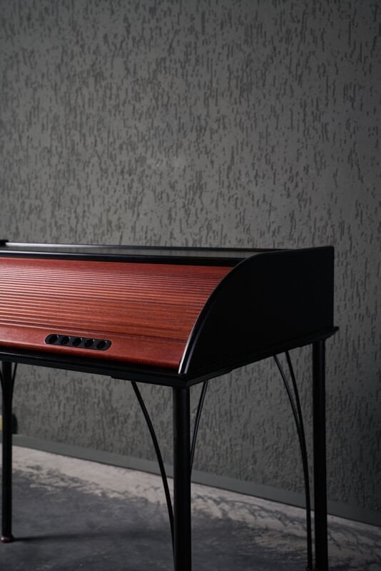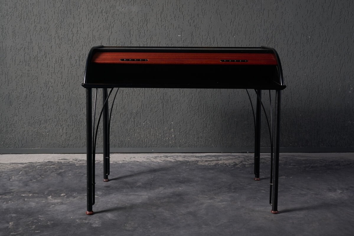 1980'lerde Pagnon & Pelhaître tarafından tasarlanan Mahogany & Lacquered Steel Writing Desk, zarif ve modern bir çalışma alanı sunar. Mahogany ahşap ve lake çelik kombinasyonu, hem estetik bir görünüm hem de dayanıklılık sağlar. Bu masa, özellikle modern ve retro tasarım unsurlarını bir araya getiren iç mekanlarda mükemmel bir odak noktasıdır.