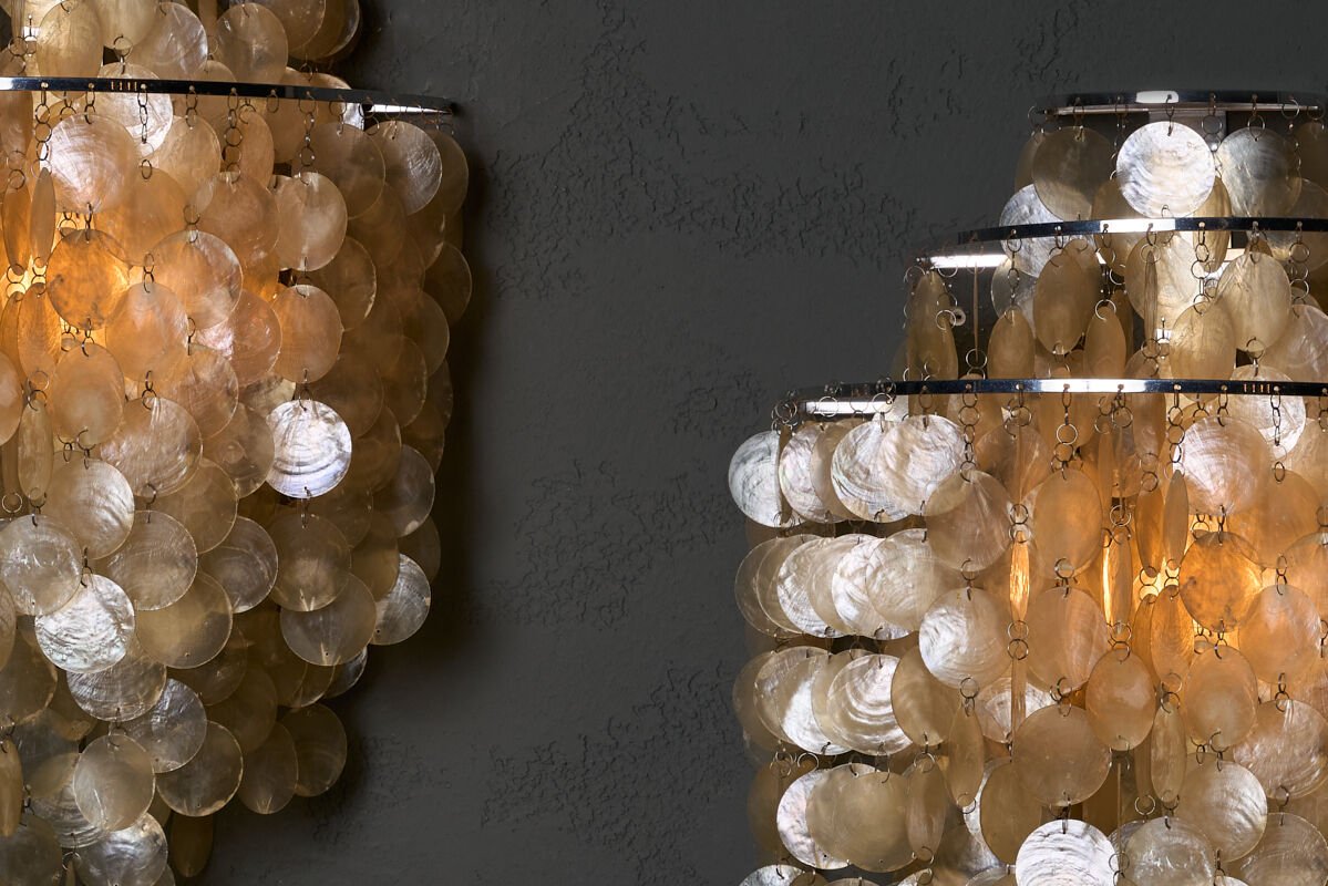 Verner Panton'un ikonik "Fun 1 DM" Shell Wall Light, 1960'ların modern tasarım anlayışını yansıtan bir aydınlatma elemanıdır. Bu duvar lambası, yenilikçi ve dikkat çekici bir tasarıma sahip olup, doğal malzemelerle üretilmiştir. Organik formları ve sıcak ışık yayma özelliği ile mekanlara zarif ve samimi bir atmosfer kazandırır.